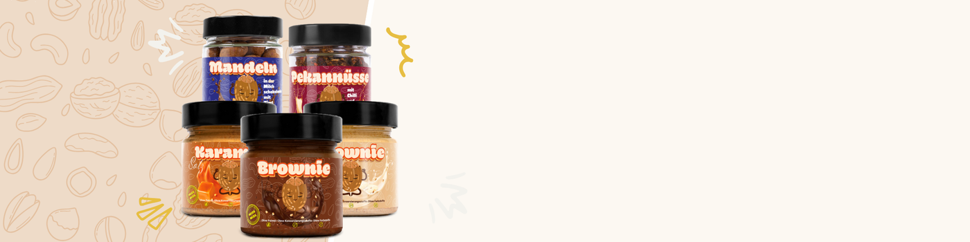 zwei bis drei Sorten Nussbutter (z. B. Brownie, Brownie White, Karamell)